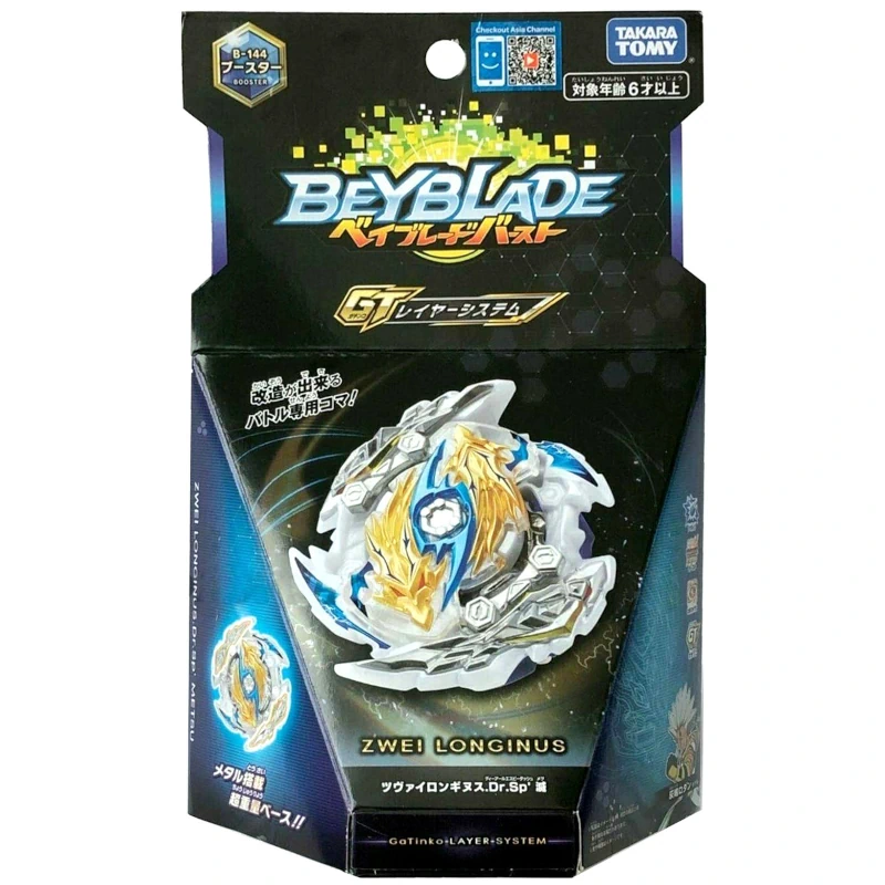 TAKARA TOMY Zwei Longinus Drake Spiral’ Metsu Beyblade Burst Booster – B-144 is an attack-type Beyblade released by Takara Tomy as part of the Burst System as well as the Gatinko Layer System.